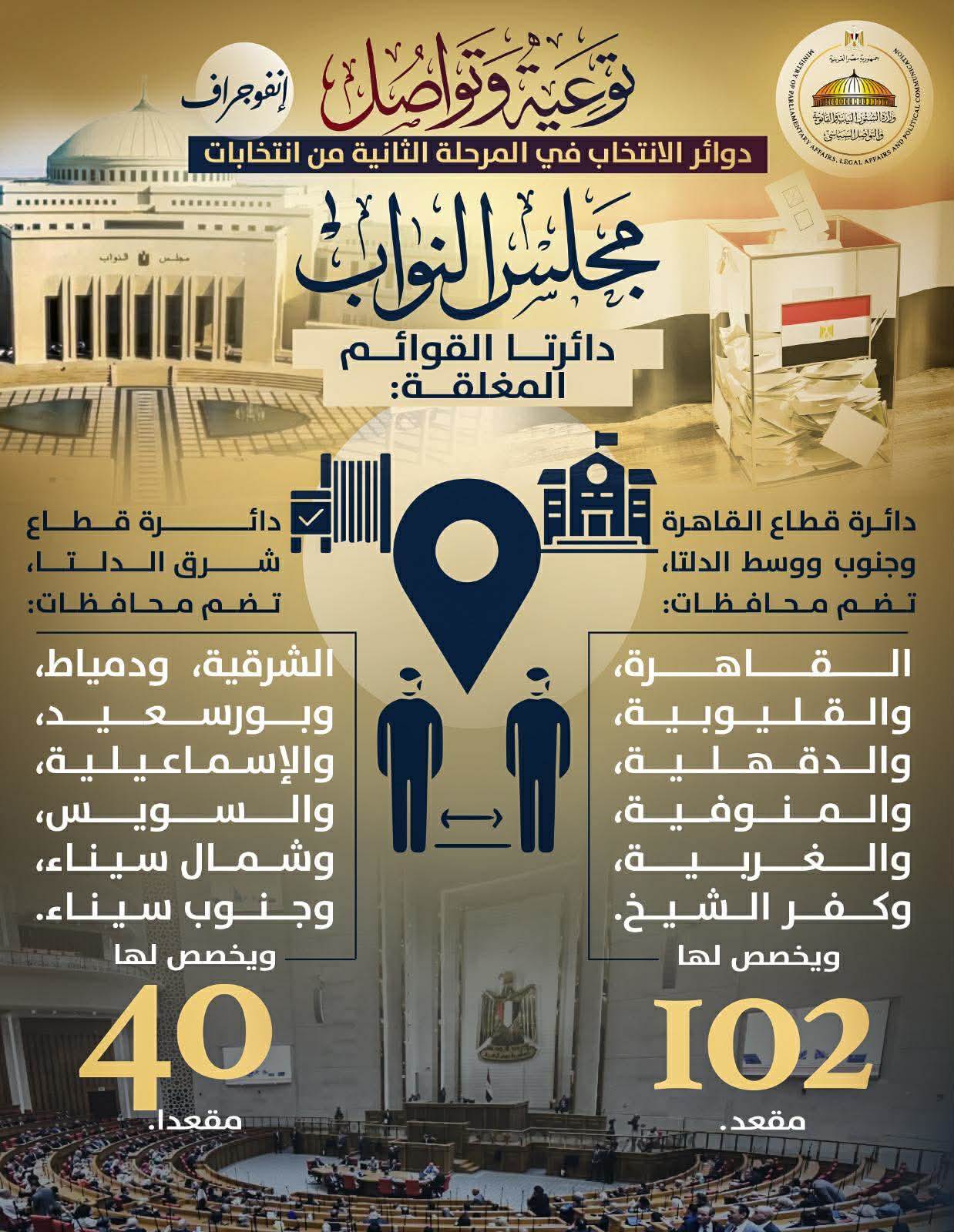 دوائر الانتخاب في المرحلة الثانية من انتخابات النواب.. تفاصيل الفردي والقائمة وعدد المقاعد بكل دائرة