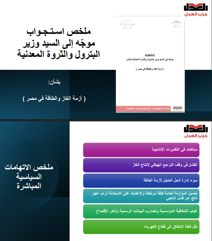 تقدّم حزب العدل عبر نائبه محمد فؤاد بأول استجواب في هذا الفصل التشريعي، موجّهًا إلى وزير البترول والثروة المعدنية، في خطوة تعكس تصعيدًا رقابيًا مباشرًا تجاه واحد من أكثر الملفات ارتباطًا بالأمن الاقتصادي للدولة، وهو ملف الغاز والطاقة.