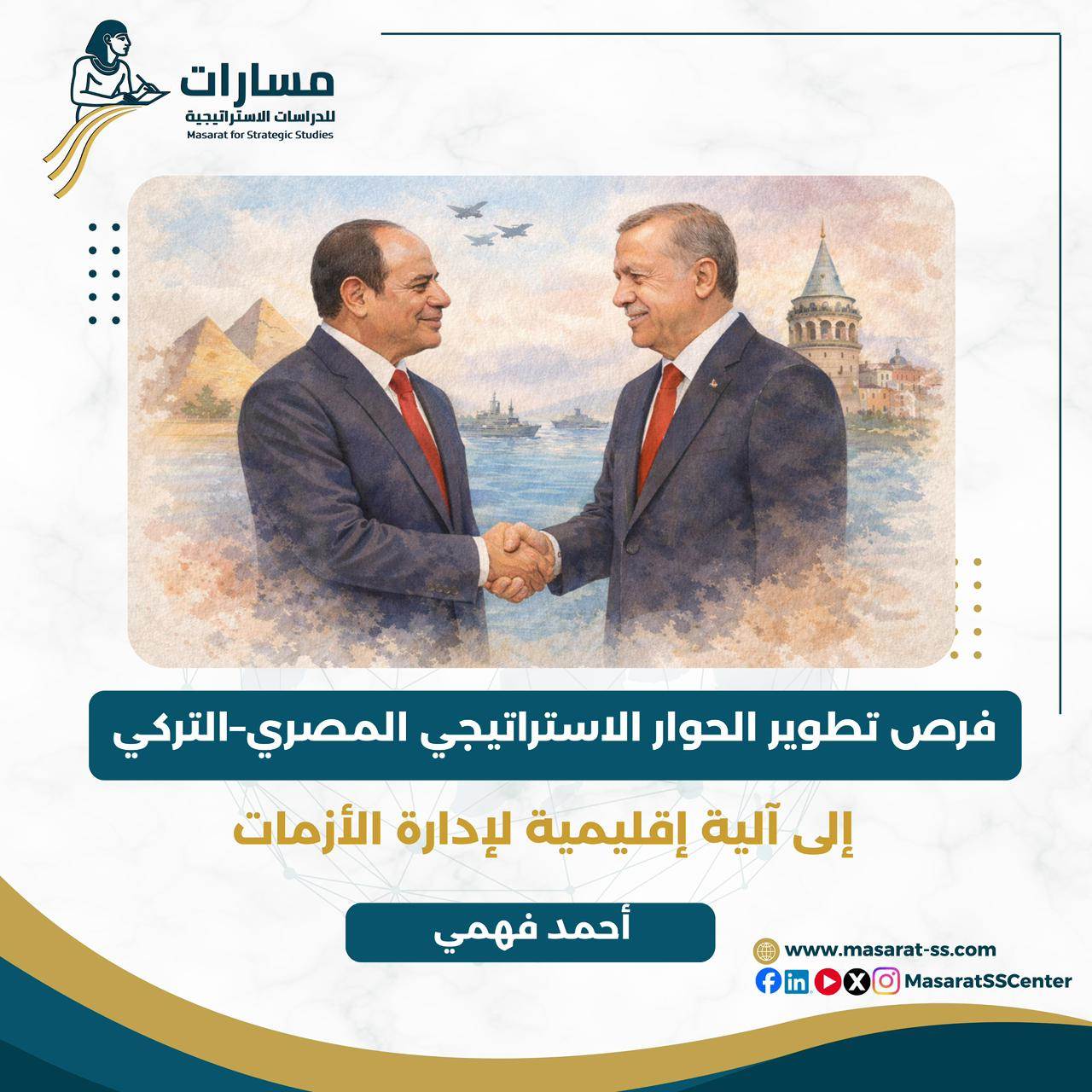 واختتمت  الدراسة بالتأكيد على  أن هذه المسارات المتكاملة توفر قاعدة عملية لتطوير الحوار المصري–التركي، بحيث يتحول تدريجيًا إلى إطار تنسيقي إقليمي فاعل قادر على إدارة الأزمات وتعزيز الأمن الإقليمي، مع الحفاظ على مصالح مصر والتحالفات الإقليمية القائمة.